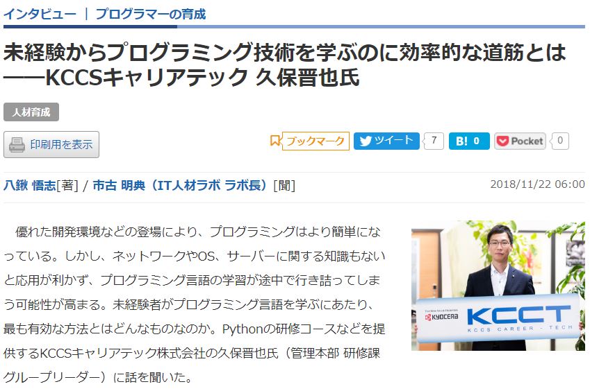 プログラマーの人材育成についてインタビューを受け、IT人材ラボに紹介されました